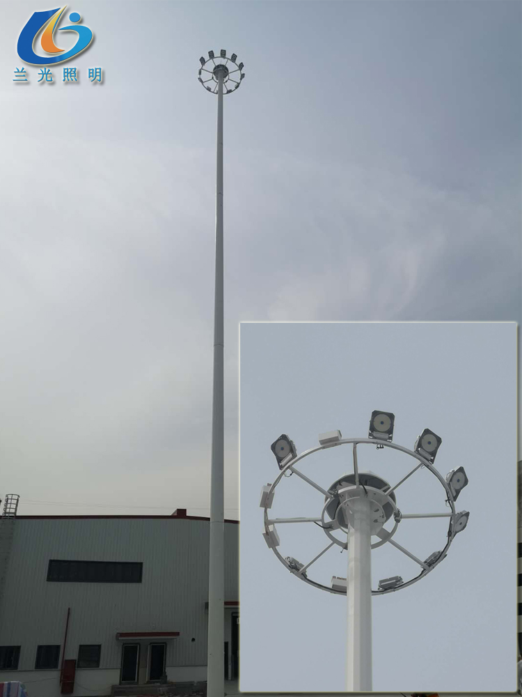 3.高桿燈頂部配設(shè)避雷針,所有連接部件為不銹鋼螺栓負載能力1000公斤。