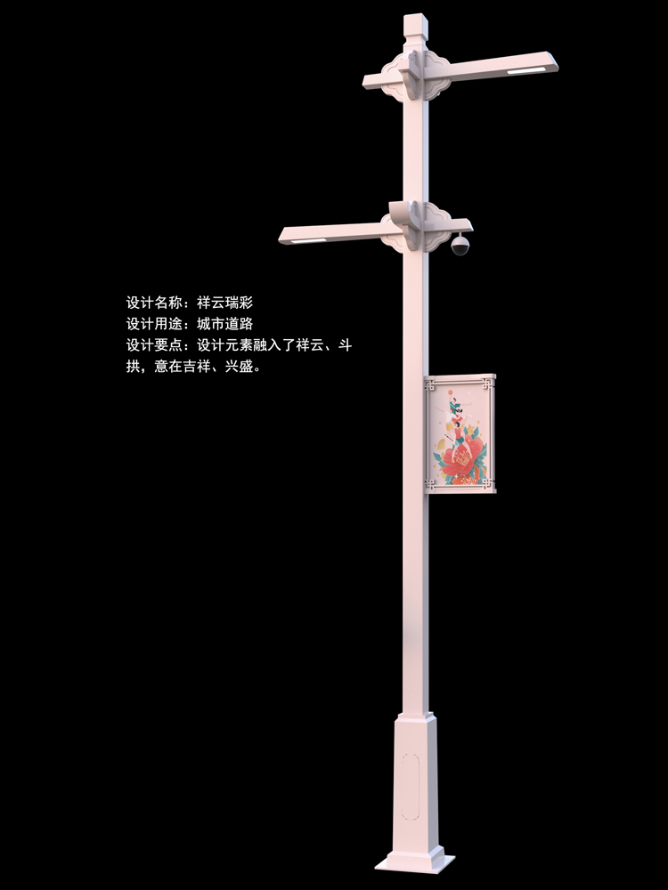 設(shè)計要點(diǎn):此燈具借鑒古建筑馬頭墻的造型,頭部采用經(jīng)典曲線,中部采用祥云圖案裝飾,下部采用精致曲度造型,整體優(yōu)美流暢,簡而…